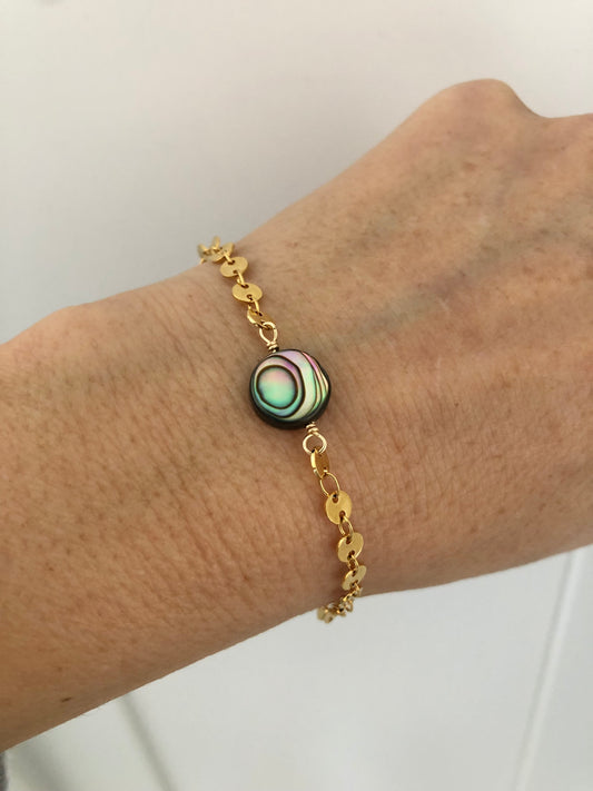 Bracelet "Ormoa" en Or Laminé et Nacre d’Ormeau