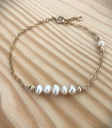 Bracelet "Lola" en Or laminé 14k et perles de culture blanches
