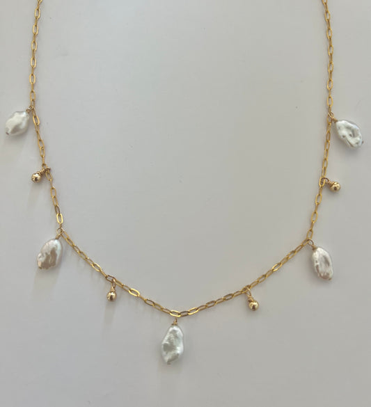 Collier "Malia" en Or laminé 14k avec mini perles d’eau douce