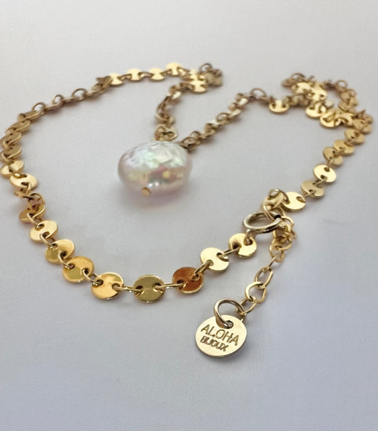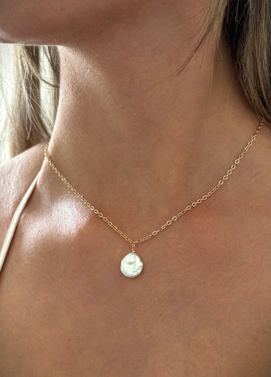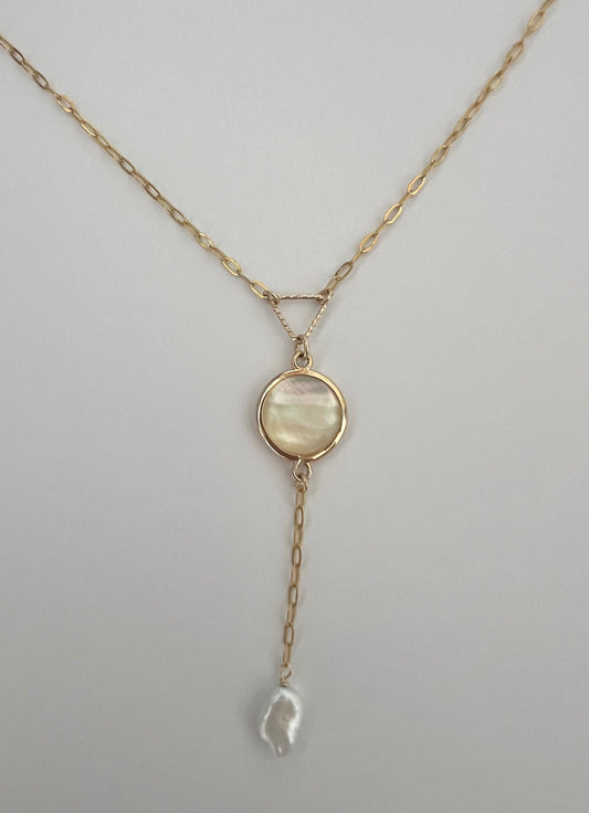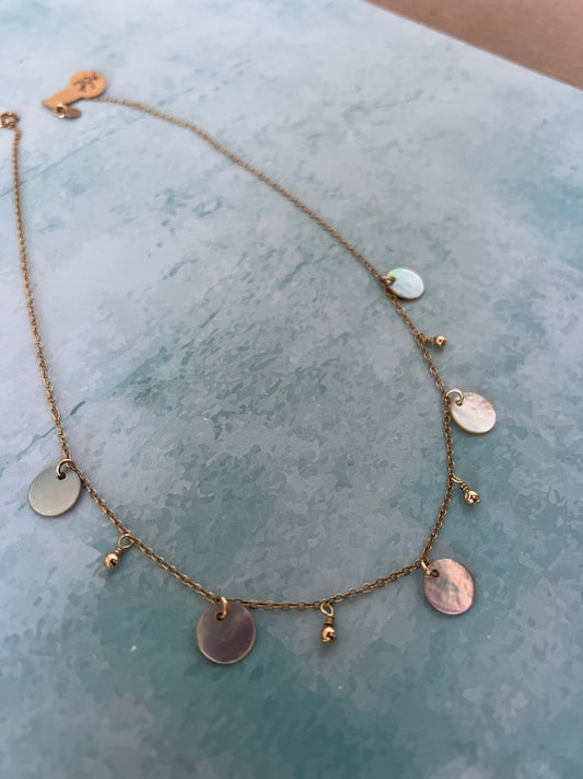Collier "Nala" en Or laminé 14k et pendentif en nacre naturelle