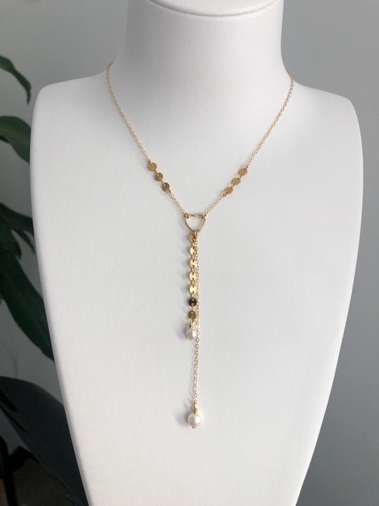 Collier Y "Lova" en Or Laminé 14k et chaîne sequin
