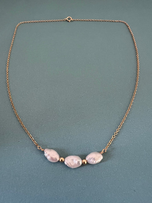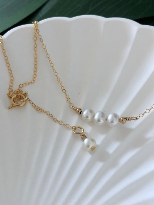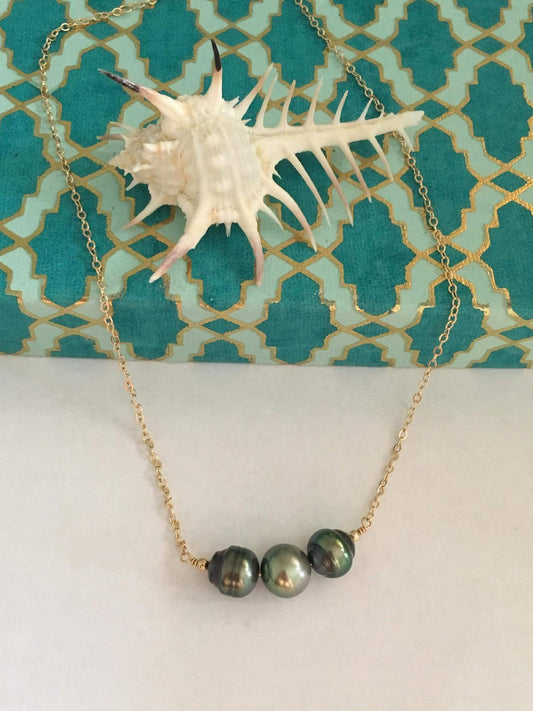 Collier "Olana" en Or laminé 14k et Trio Perles de Tahiti