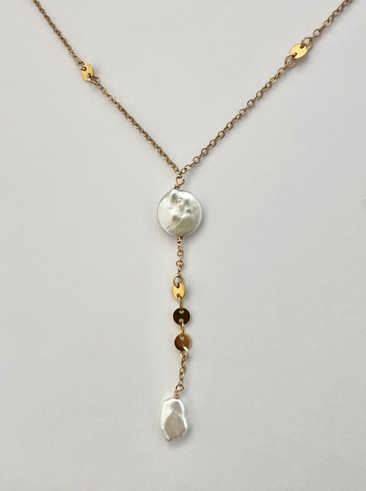 Collier Y "Ibiza" en Or Laminé 14k et perle de culture
