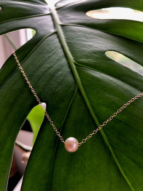 Collier "Mina" en Or laminé 14k et perle d'eau douce rose