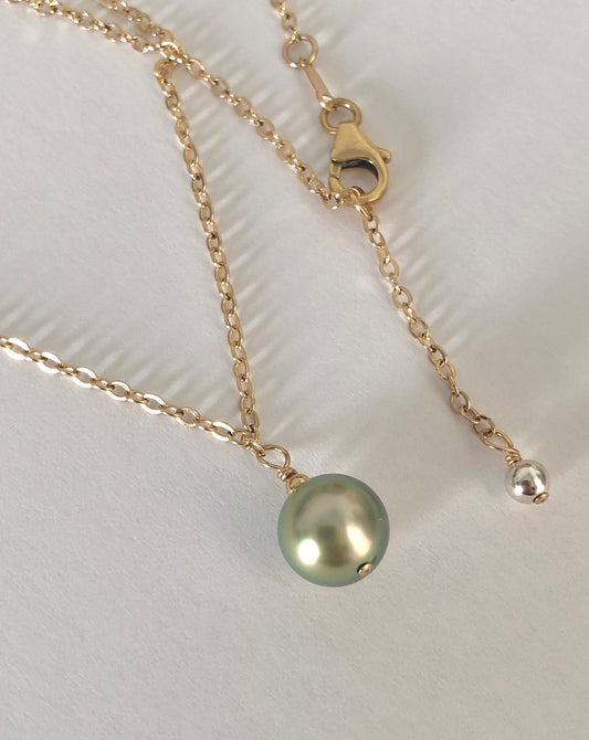 Collier "Lima" en Or Laminé 14k et perle de Tahiti verte